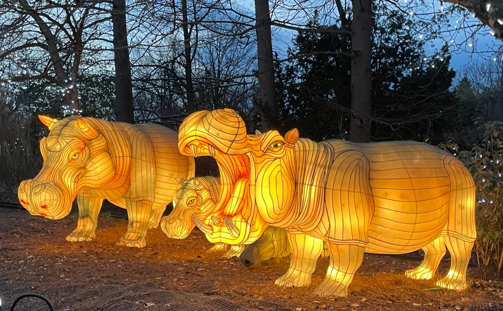 December? Not the best time of year to visit a zoo in North America, obviously. As you’d expect, it was cold, grey and sprinkling, and many of the animals were hid away. But the Festival of Lights came on with the evening, and—I mention, for completeness, that Ohio offers very large edibles—the effect of a rising glow from lantern animals was while at a zoo was totally enjoyable.