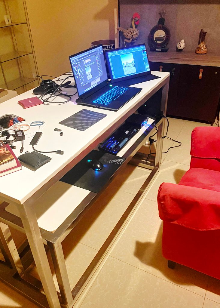 Over the past couple of years, I’ve sorted out a mobile office setup. It fits into two backpacks, two laptops, external drives, wifi, VPN, portable monitor, power extensions, adapters, cables, strips, keyboard, mouse, drawing tablet, iPad, Switch, audio interface, mic, headphones, and gamepad. Everything fits as carry-on for any flight, domestic or international.